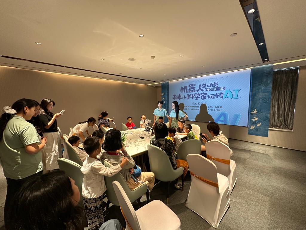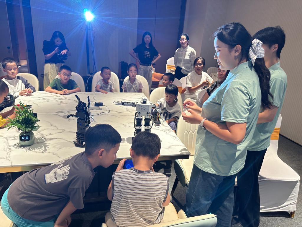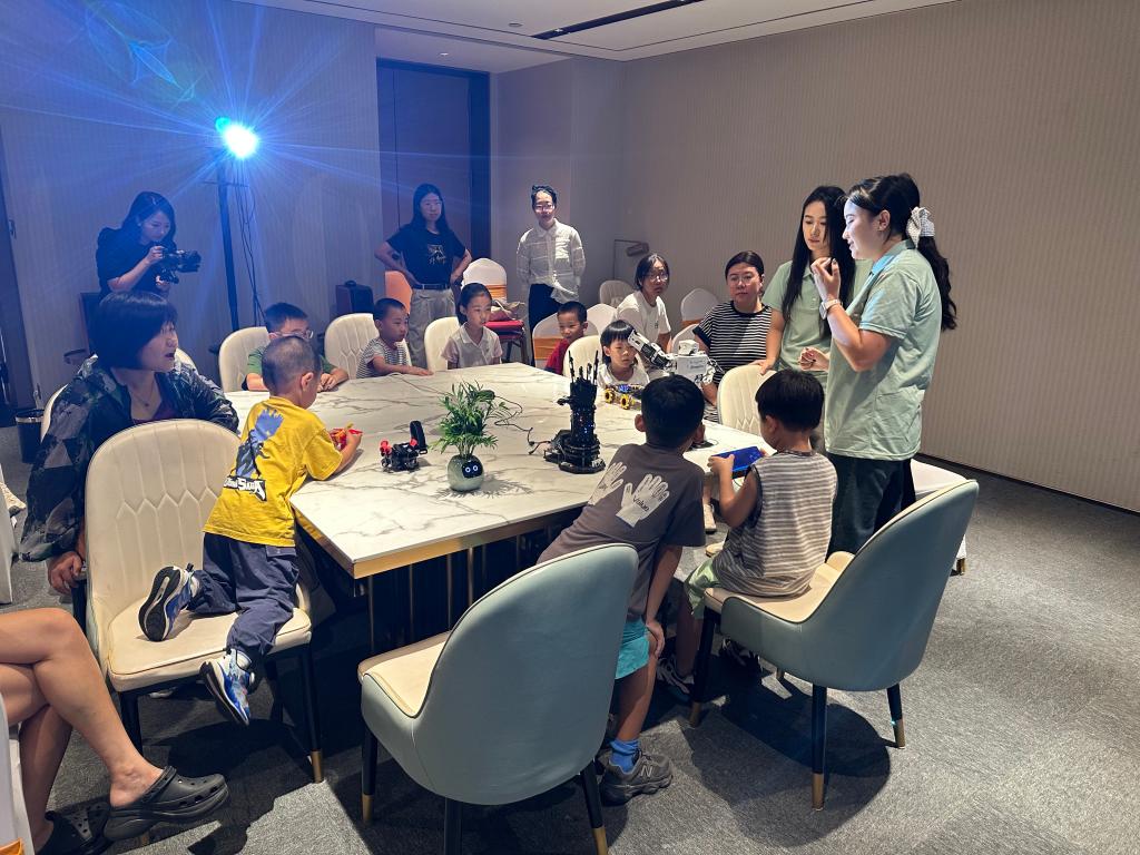 活动现场,智能仿生手控设备、智能多关节舞蹈机器人、智能遥控汽车等教具一字排开,吸引了孩子们的目光。这些平日里只在电视或网络上见过的“高科技”,此刻就摆在眼前,小朋友们眼里满是兴奋与期待。