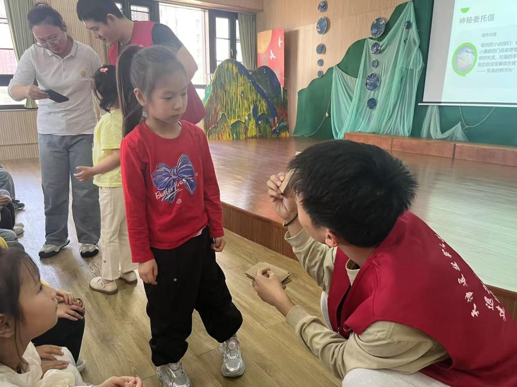2025年4月17日,我校“戎光”退役军人志愿服务队前往文致苑社区幼儿园以“萌宝侦探社”为主题开展沉浸式互动型国家安全教育志愿服务活动。