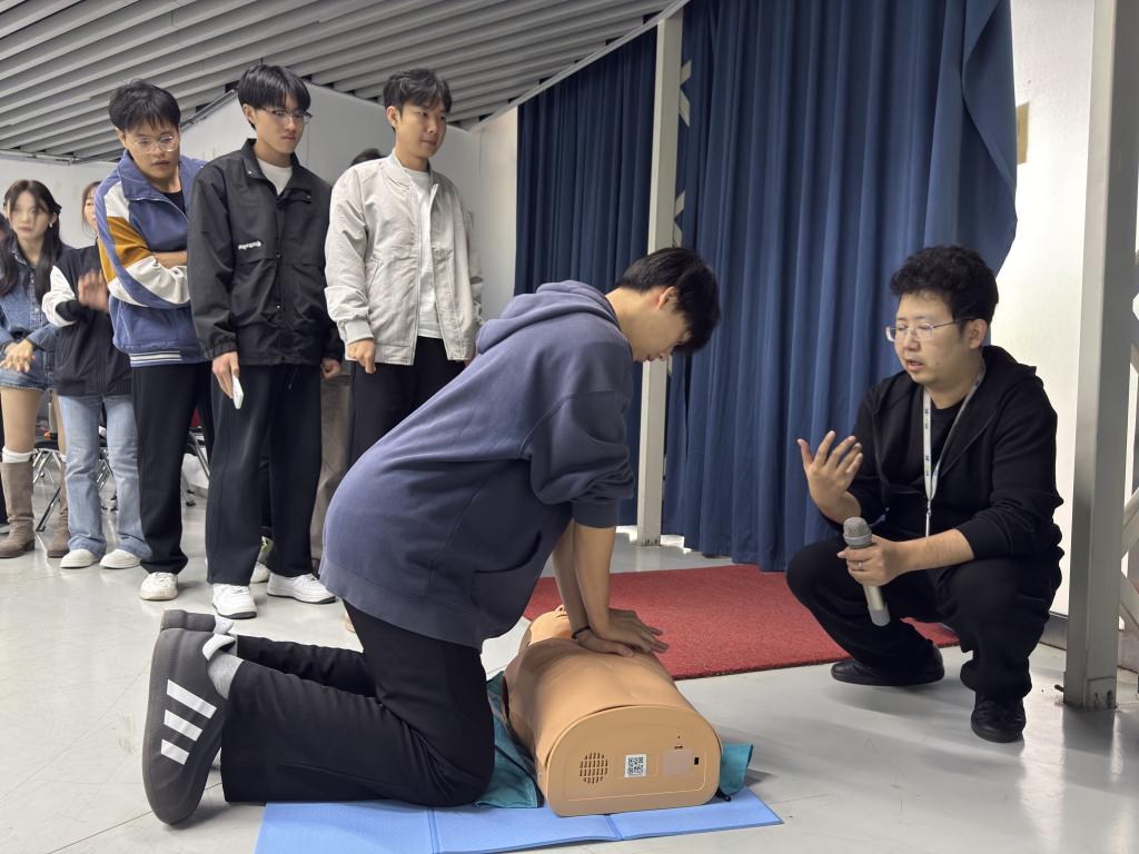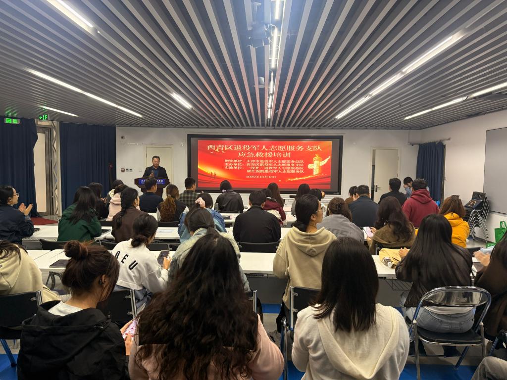为普及应急救护知识,提升大学生应对突发事件的自救互救能力,2025年10月16日,天津市大学软件学院联合西青区退役军人事务局、天津康汇医院举办应急救护培训活动。本次活动特别注入“迷彩”力量,我校50余名大学生退役士兵在退役军人的带领下,共同接受了一场生命教育的洗礼。