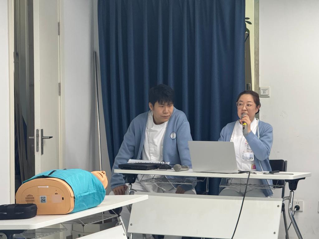 我校精心选派了6名具备应急救护专业资质的优秀退役大学生士兵担任助教。这些昔日保家卫国的战士,如今化身守护生命的“导师”,将其在部队中练就的过硬心理素质、快速反应能力和严谨作风带到了培训现场。他们与康仁医院的培训老师紧密配合,构成了“专业医学理论+实战化教学”的黄金组合。