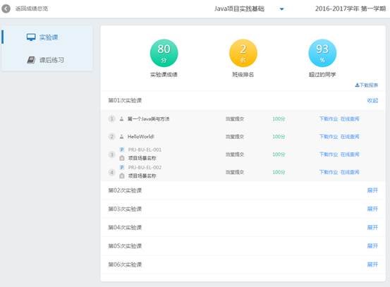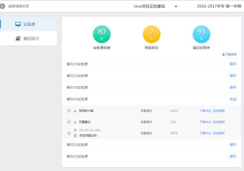 2.1 如图4-2,左侧可以切换查看实验课或者课后练习的成绩