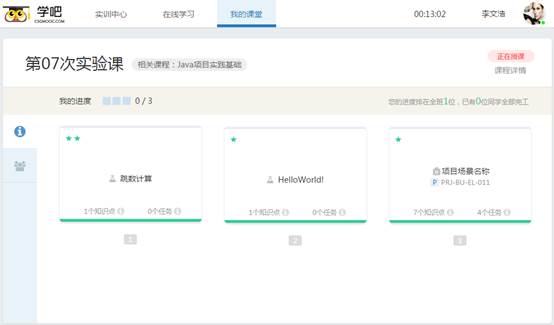实训计划中,相应实验内容添加了课后练习内容的,在开始授课后,历史课堂会显示课后练习内容,如图3-5,相应的操作与课堂内容一致