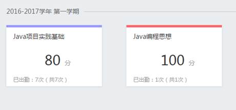 1. 成绩界面显示不同课程的成绩,封面上显示实验课次数,以及该学生出勤的次数,如图4-1所示