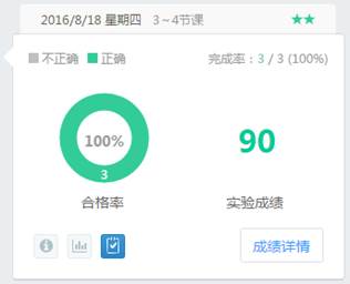 如果该节课已经批改了,学生可以查看到该节课的成绩,如下图3-3,点击成绩详情,可以进入成绩界面,如图3-4