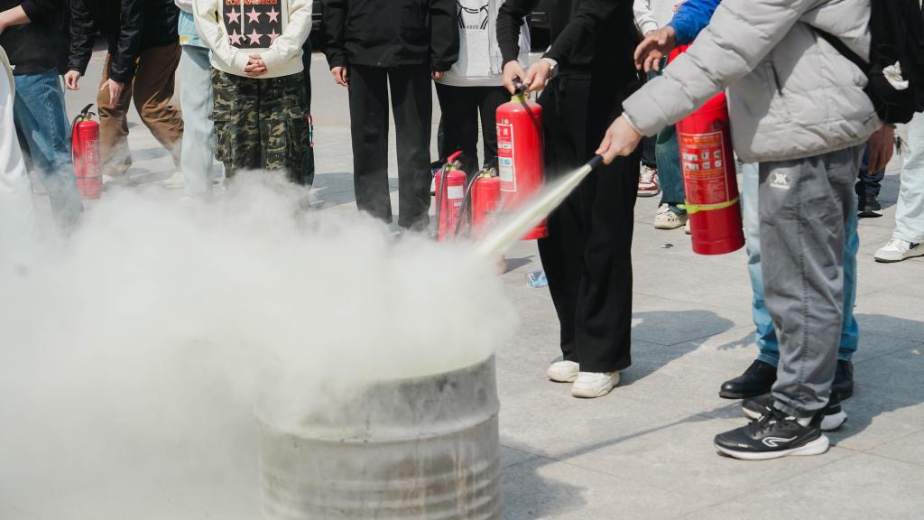 疏散演练结束后,消防专业人员详细讲解了火灾的成因、灭火器的种类、适用范围以及正确的使用方法,并进行了示范操作。参与师生认真听讲,记录要点,并在消防人员的指导下,运用学到的灭火知识,分批次进行灭火实操。通过亲身体验,师生们更加直观地掌握了灭火器的使用技巧,提高了应对火灾的实际操作能力。