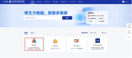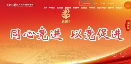 从天津市大学软件学院官方网站PC端首页(https://www.tjise.edu.cn/)点击右上角“网上办事大厅”。