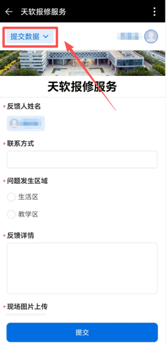 同时为为生动践行天软·元社区融合共建的服务理念,扩大天软报修/投诉服务系统的服务范围,所有入驻天软·元社区的学生及相关用户均可通过微信扫码二维码的方式进行问题反馈,提交后再次扫描二维码可查看历史记录。