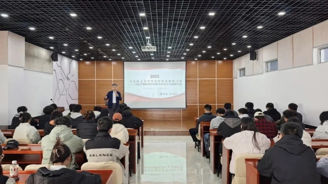 围绕党的二十届三中全会精神,张玉波校长以《马克思主义中国化时代化新的飞跃——习近平新时代中国特色社会主义思想导论》为题,从世界发展趋势切入,从当今中国国情出发,详细论述了中国在不同历史时期不断探索前行,不断深化改革,不断建设有中国特色的社会主义道路并取得瞩目成就的历程。结合自身工作实际,引导现场师生正确认识中国国情和中国特色,真正领悟中国从站起来、富起来、到强起来的不断飞跃。