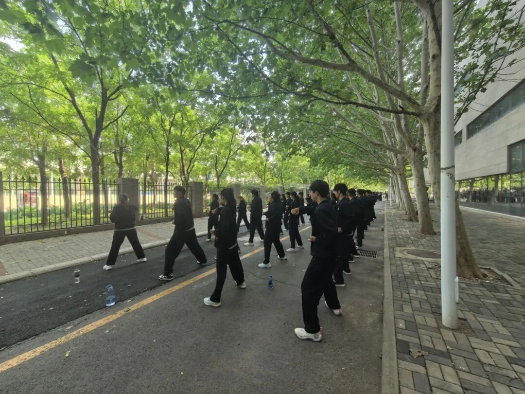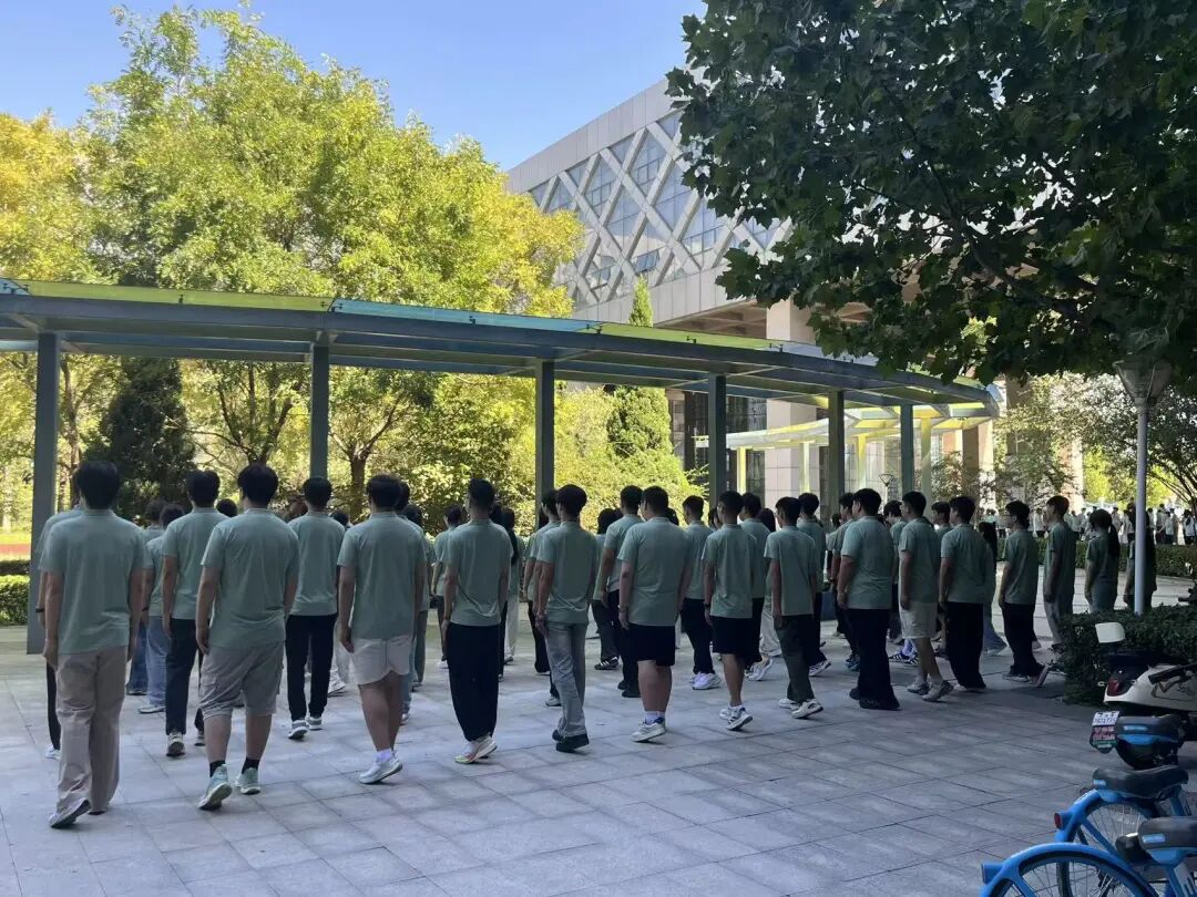 随后推进的“队列行进”训练,更考验团队协同能力。齐步走时摆臂高度、步幅大小需毫厘不差,正步走时脚尖绷直、落地铿锵,跑步走时方阵如整体般灵活移动。从初期的步伐参差,到后期通过互相提醒、调整节奏实现“横看一条线、竖看一条线、斜看一条线”,同学们在一次次磨合中深刻领悟“团结就是力量”的真谛,也在整齐的步伐中,致敬阅兵场上解放军官兵的铁血风采,体会国家力量背后个体的自律与奉献。