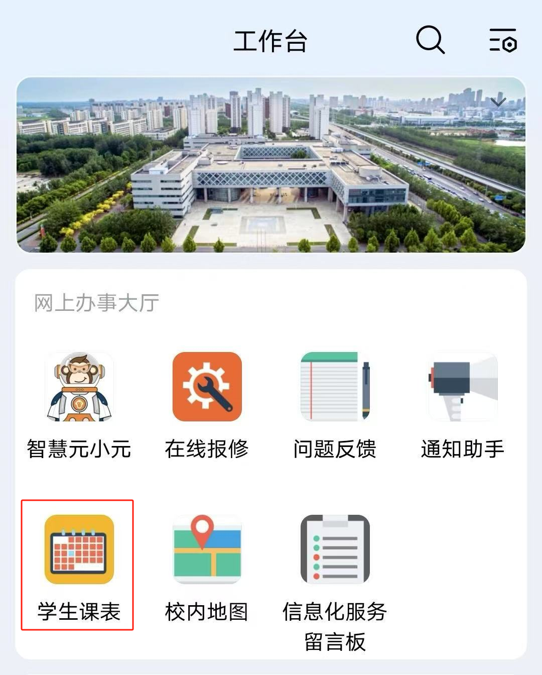 为进一步简化课表查询流程,提升用户体验,学校推出的手机端“学生课表”应用于近日上线并试运行。即日起,同学们可通过手机端企业微信,动动手指,随时随地轻松查课表~