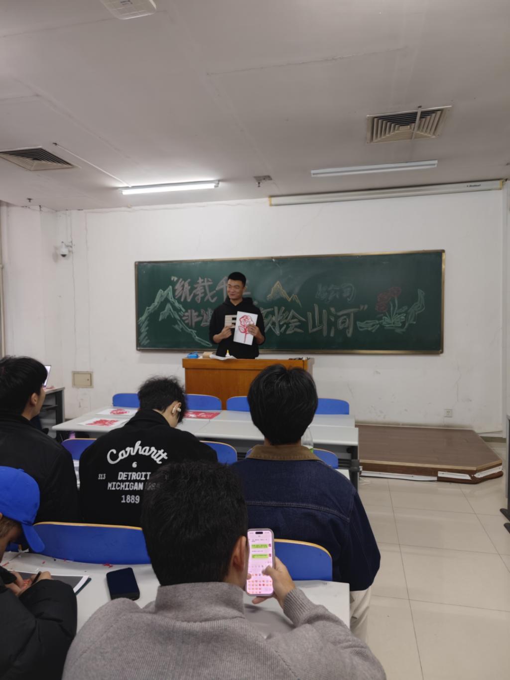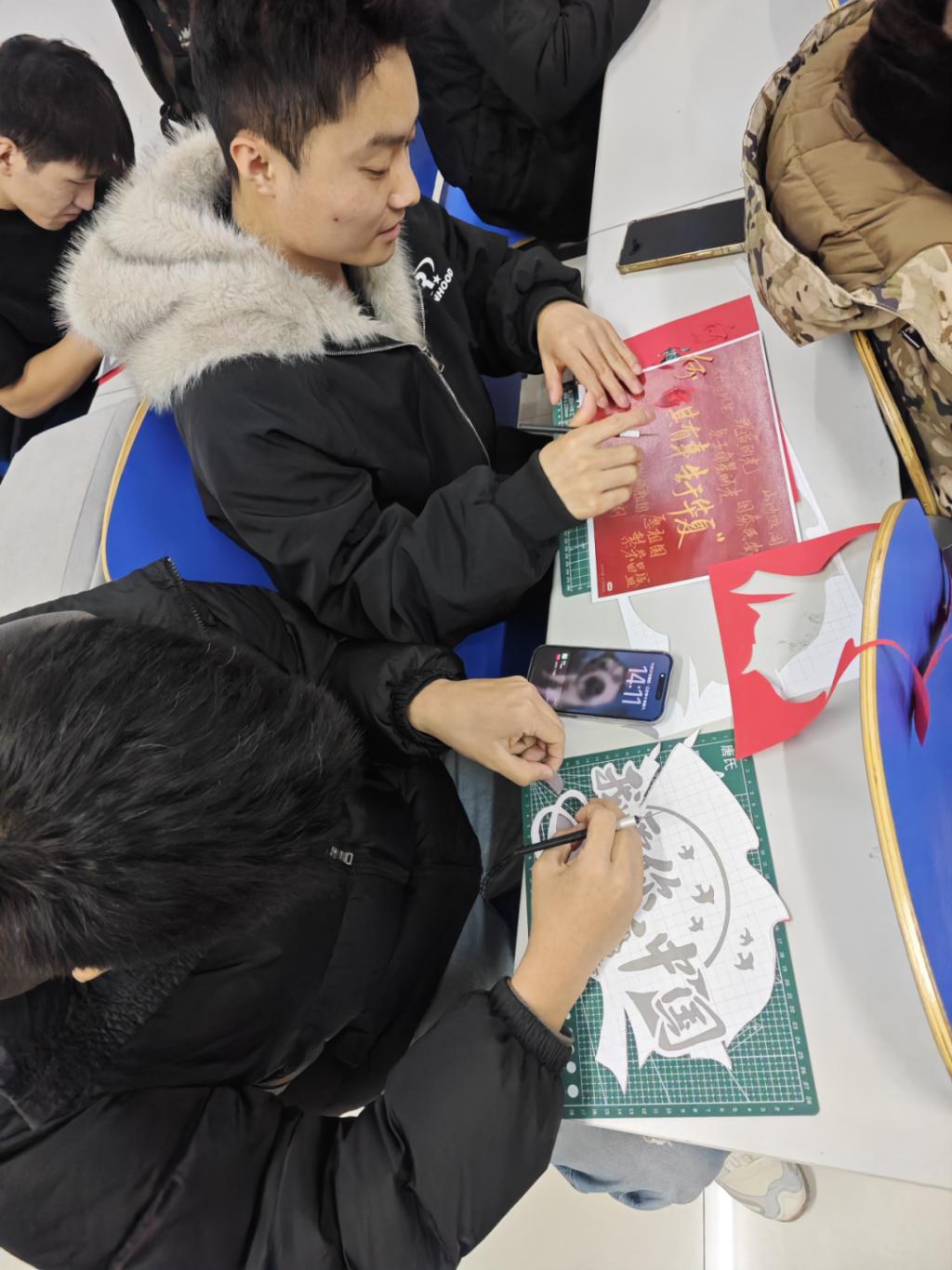 活动现场,同学围坐在一起,相互交流创意、分享技巧,气氛热烈而温馨。“我从小就看长辈剪民族花纹,今天第一次把家乡的风景和国旗刻在一起,感觉特别有意义。”他举起半成品向身边的同学展示,旁边的少数民族同学则热情地分享着自己将民族特色建筑、祥云与长城元素融合的创作思路。