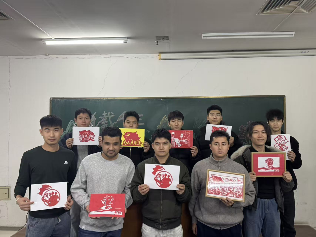 随着活动推进,一幅幅主题鲜明、风格各异的刻纸作品陆续完成。有的同学刻下“我爱你中国”的醒目字样;有的同学以天安门、华表为原型,融入民族服饰元素;还有的同学创作了“民族团结进步”“强国复兴有我”等主题作品。大家纷纷举起自己的作品合影留念,红色的宣纸、精美的纹样与同学们灿烂的笑容相映成趣,构成了一幅生动的民族团结画卷。