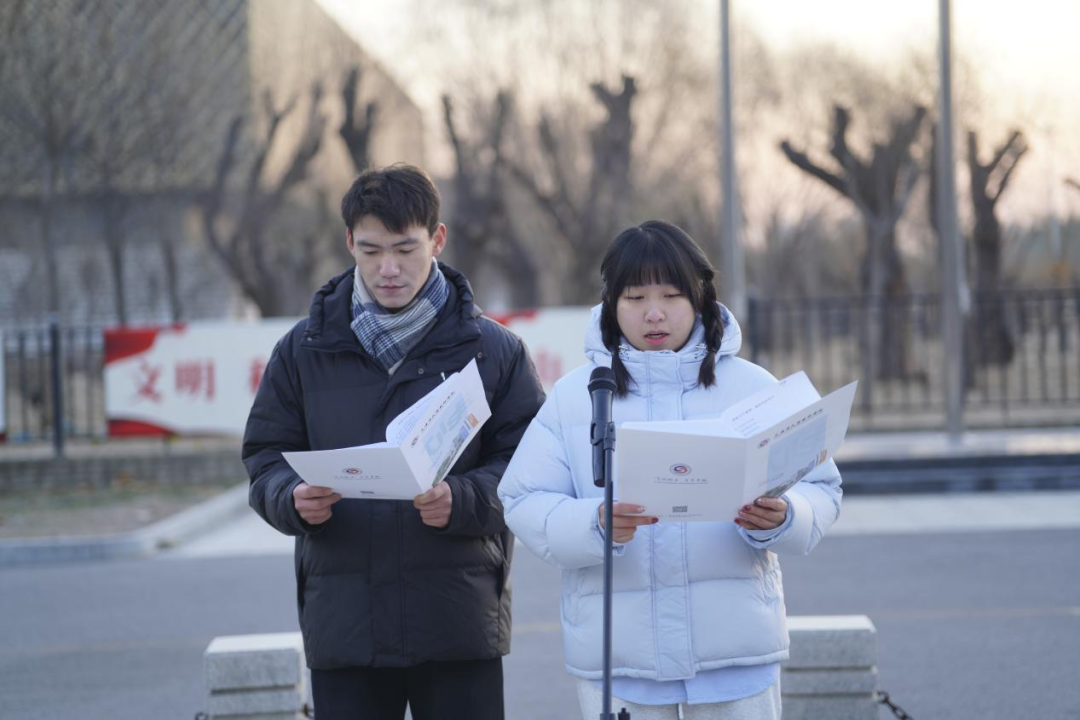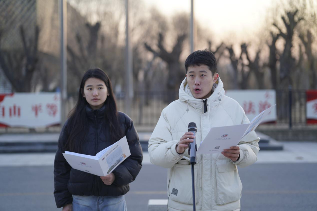 来自2506班的学生代表马鑫鹏同学以《承“一二·九”薪火,践天软初心,筑强国之基》为题作国旗下讲话。她从“至诚致力 卓异卓越”的校训出发,号召全体同学: