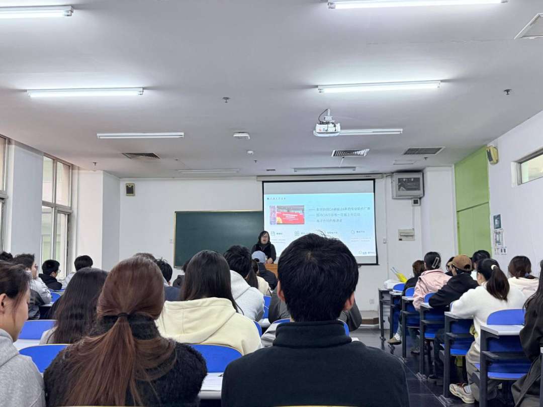 宣讲会上,泛微的宣讲人员通过生动的PPT展示、精彩的视频资料以及详细的案例分析,借助鲜活的案例与精准的数据,全方位介绍了公司的发展历程、企业文化、业务范围、组织架构以及人才培养体系等内容。在介绍公司业务时,宣讲人员重点讲解了软件开发等前沿领域在公司业务中的应用,包含“衣、食、住、行”等多方面的创新成果,让学生们直观感受到开发行业在数字化时代的新机遇与新挑战。通过此次开展企业宣讲活动,精准把握其人才培育的未来坐标。学院亮专业特色、展育人成果,企业析行业趋势、明用人标准,双方围绕人才培养与行业发展共探合作新方向,同时着重强调了“志达宇泛,见著于微”的发展理念。