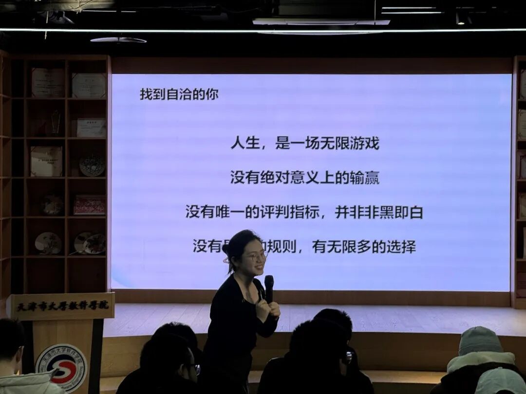 在“自洽:打破标签,找到真实的自己”主题分享中,汪帅老师以独特的视角阐述了“人生无输赢”的核心理念。她结合自己多年职场生涯的亲身经历,深入探讨了如何在竞争激烈的社会环境中保持内心平衡,如何在事业追求与生活品质之间找到最佳契合点。汪老师强调,真正的职业成功不是外在标签的堆砌,而是内在价值实现的过程,她鼓励同学们在职业选择中倾听内心声音,建立属于自己的价值评判体系,这一分享为面临择业压力的学子提供了宝贵的心灵指引。