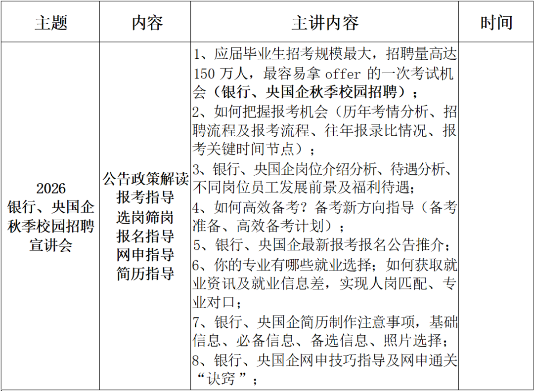 2026 银行、央国企秋季校园招聘宣讲会