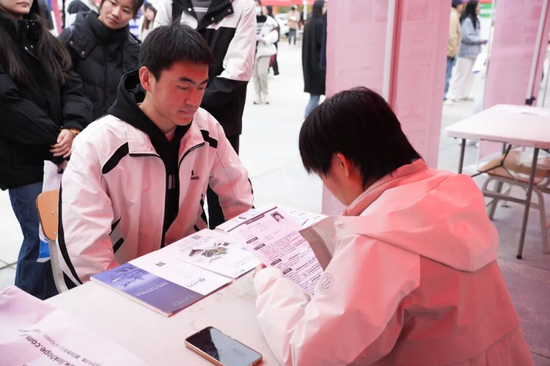 同时,现场还贴心设置AI简历改写功能区,邀请生涯规划领域的资深老师为学生提供一对一简历修改服务,针对简历亮点挖掘、岗位匹配度提升等问题给出专业建议。负责征兵工作的老师与在校退役士兵学生组成咨询团队,为有意向“应征入伍”的学生解读政策。“西部计划”专项政策解读专区也同步开放,帮助学生全面了解多元化就业渠道,明晰不同就业方向的机会与要求。