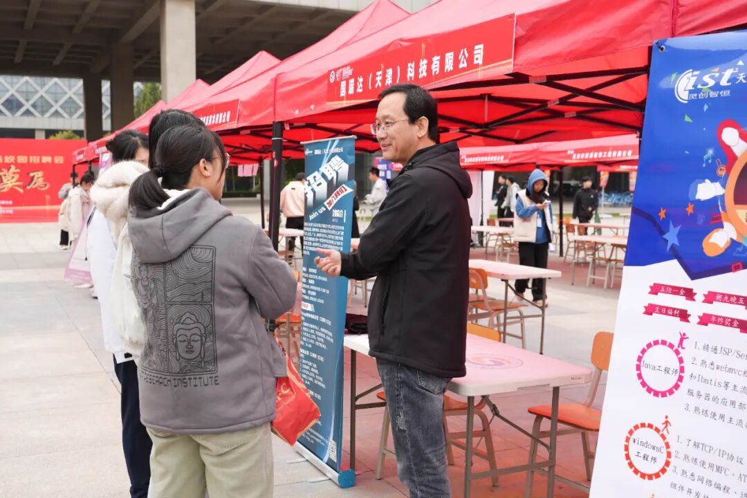 首次实现从“单点对接”到“生态聚合”的升级。以往招聘会多为企业与学生的单向岗位对接。本次活动通过联动多类协会与产业集群,让学生面对的不再是孤立的企业,而是完整的产业生态圈。以天津鲲鹏生态创新中心为例,向学生展示了计算产业的发展趋势与人才需求方向,帮助学生从产业视角规划职业发展,极大拓展了职业发展的宽度与深度。