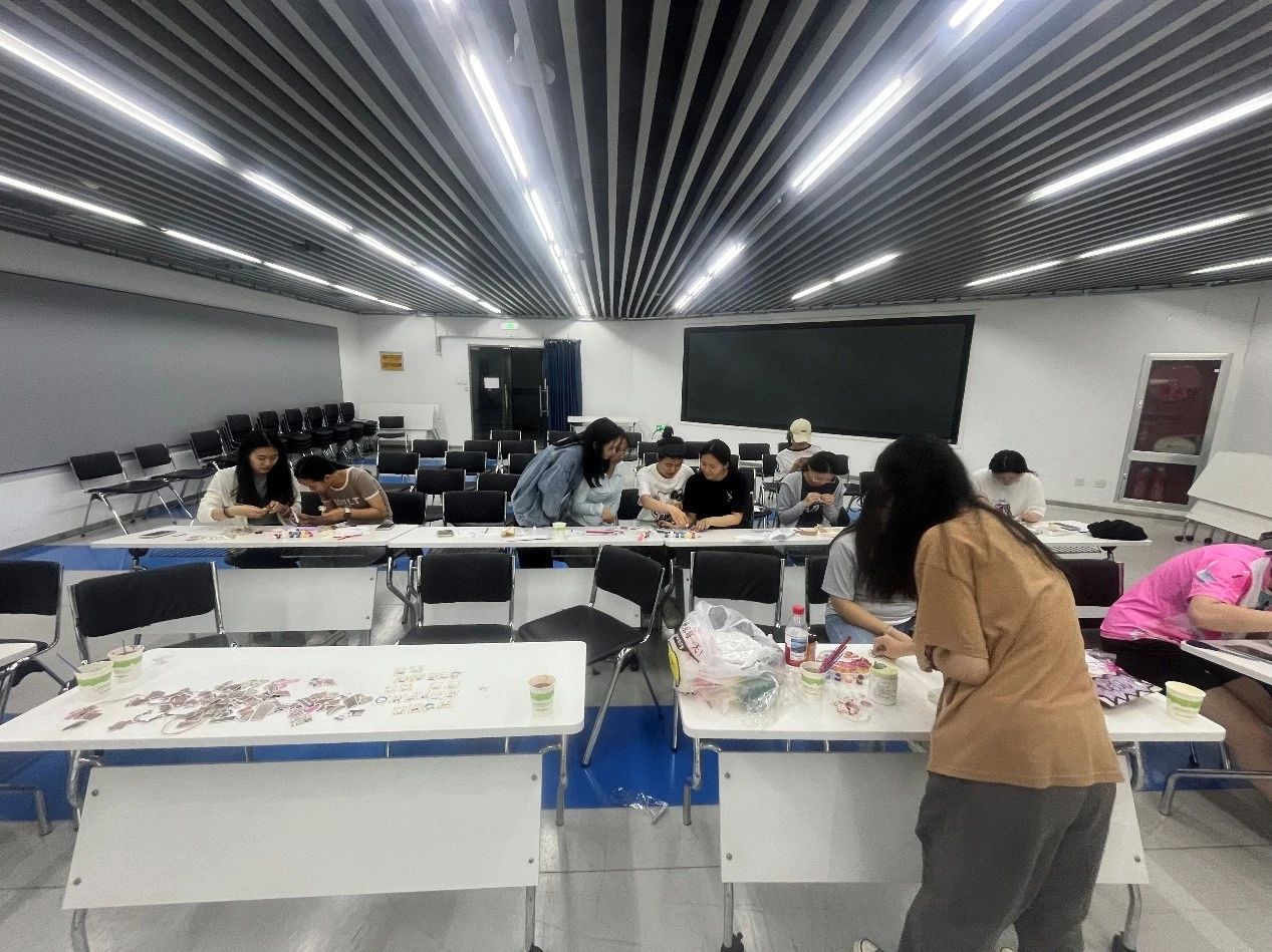 游戏环节结束,创意满满的门牌制作环节开启。得分高的小组兴奋挑选材料,其他小组也不甘示弱,围坐一桌头脑风暴。舍友们分工协作,交流声、欢笑声不断。空白的门牌,渐渐变成独一无二的“宿舍名片”,承载着大家的创意与对宿舍的爱,让“家”的归属感愈发具体可感。