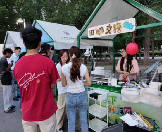 活动当日,负责组织的同学们早早忙碌起来,打扫场地、布置摊位、悬挂装饰……每一个细节都藏着心意。活动开始,各式商品陆续“登场”:带着笔记的教材、功能完好的电子产品、精巧的手工艺品,还有各类收纳盒等生活好物,每一件物品都承载着故事,等待新的延续。