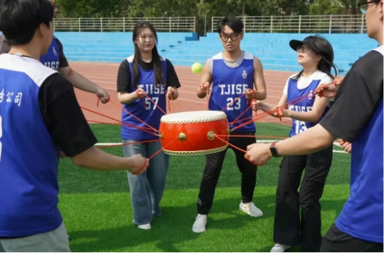 竞技环节由同心鼓、快乐旋风跑、挑战NO.1、毛毛虫、袋鼠接力跳等五项趣味项目组成,不仅考验了参赛队员的体能与技巧,更在欢声笑语中促进了同学间的情感交流与团队协作,锻炼了大家的耐挫与沟通能力,引导学生在游戏中学习心理调适方法,增强心理韧性。