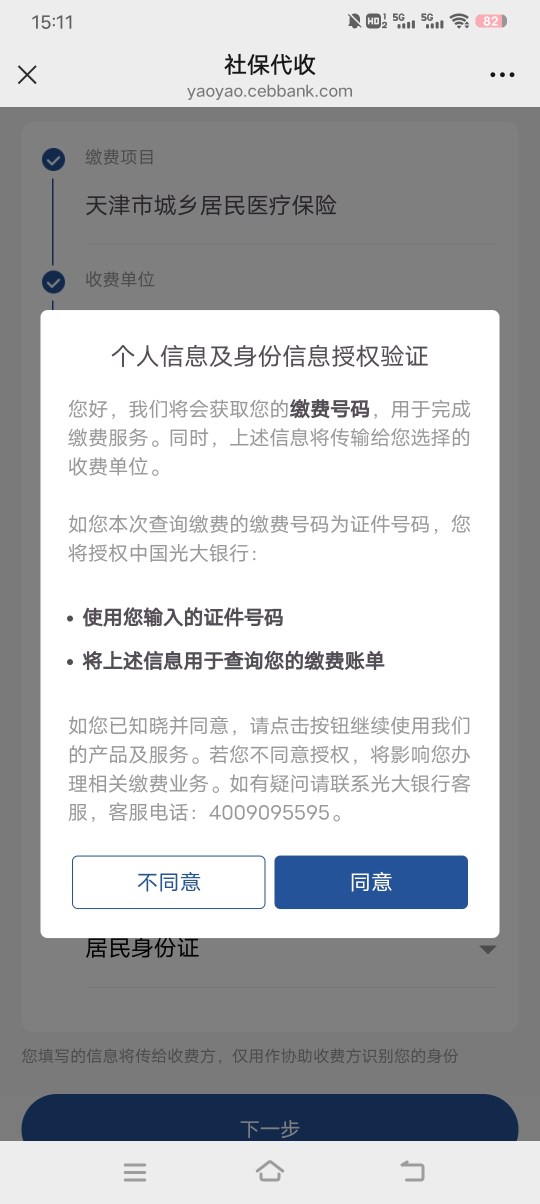 跳转至社保代收页面,点击“同意”。