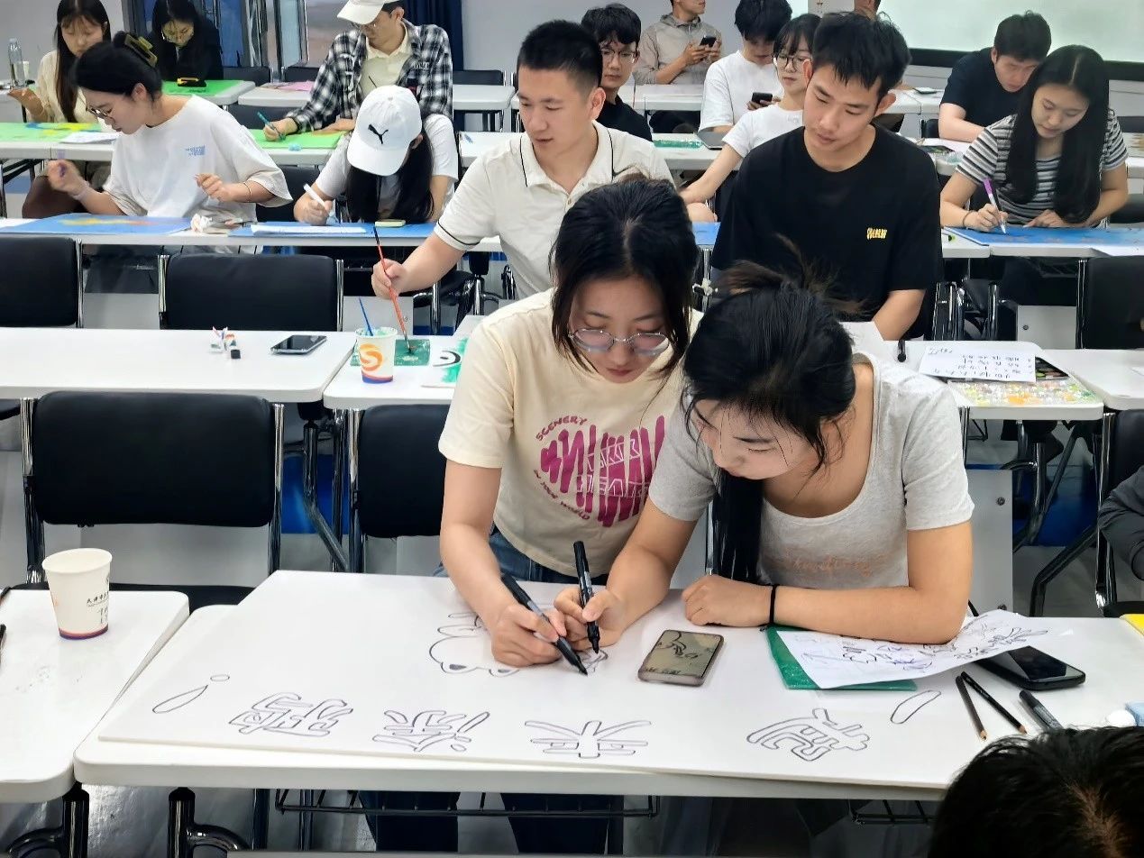 在绘制过程中,同学们充分发挥自身特长,擅长绘画的同学精心勾勒图案,文笔出色的同学认真撰写文案,富有创意的同学则不断提出新颖想法,现场气氛热烈而有序。