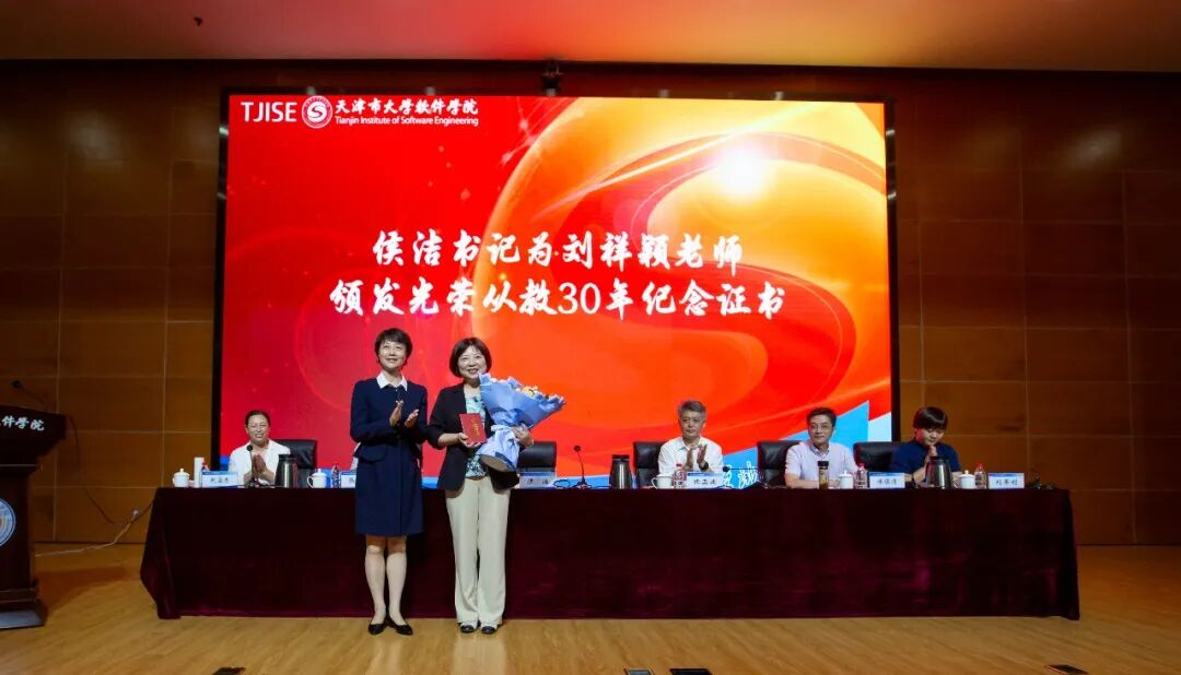 大会表彰了一年来我校涌现的教学工作先进集体和优秀个人。其中,优秀董事(班主任)25名、学生学科竞赛优秀指导教师31名、毕业设计优秀指导教师41名、“教育教学改革突出贡献奖”获奖者5人、优秀工程师9人、杰出工程师团队3个、教学管理奖9项、就业工作先进单位6个、就业工作先进个人11名、就业工作特别贡献奖14名。党委书记侯洁还代表学校为刘祥颖老师颁发了光荣从教30年纪念证书。
